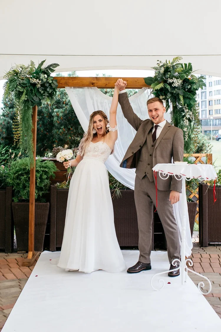 "Дима, хотим сказать тебе огромное спасибо ещё раз за то, что так здорово провёл нашу свадьбу!! Всем гостям и нам тоже очень понравилось)мы получали только положительные отзывы о тебе) ненавязчиво, тепло, душевно, уютно, весело и трогательно) мы точно не ошиблись в выборе, спасибоо и успехов тебе!"